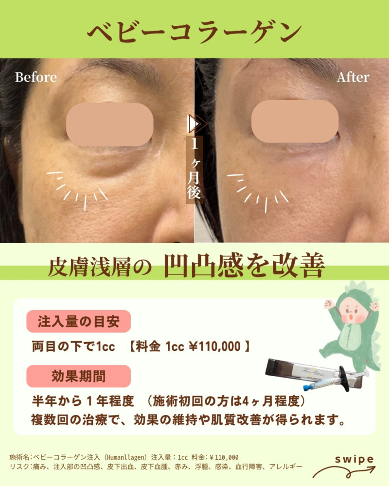 浅い凹みにはベビーコラーゲンで埋めていくという
